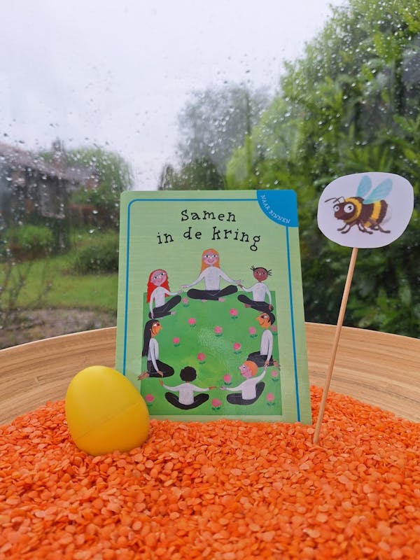 De tweede les met het thema zintuigen gaat over horen. Naar welke naam luister jij? De linzen maken geluid als je er met je handen doorheen gaat. We doen een aantal houdingen met een partner, een goede samenwerking is belangrijk.