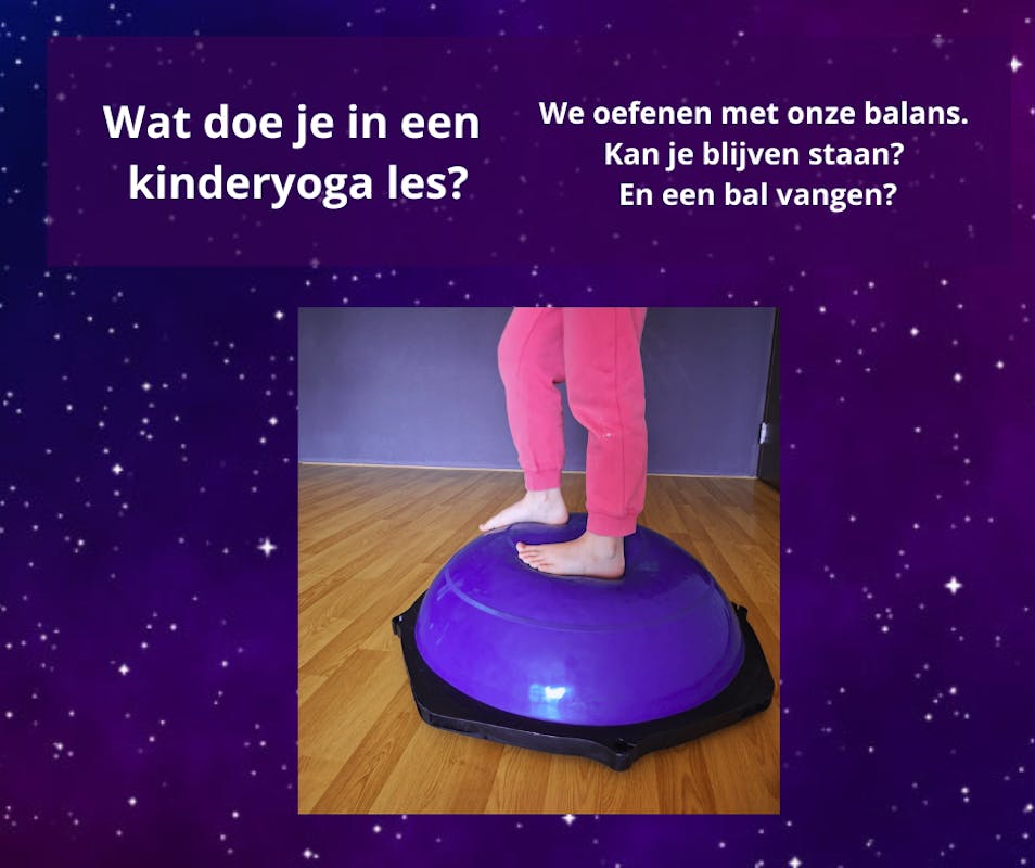 Elke les heeft een ander thema. We doen ademoefeningen, yoga houdingen en spellen. Er is voldoende ruimte voor persoonlijke aandacht. Je krijgt het ook "zwetend warm" en we oefenen met onze balans. Stevig staan zorgt voor een krachtige uitstraling en zelfvertrouwen.