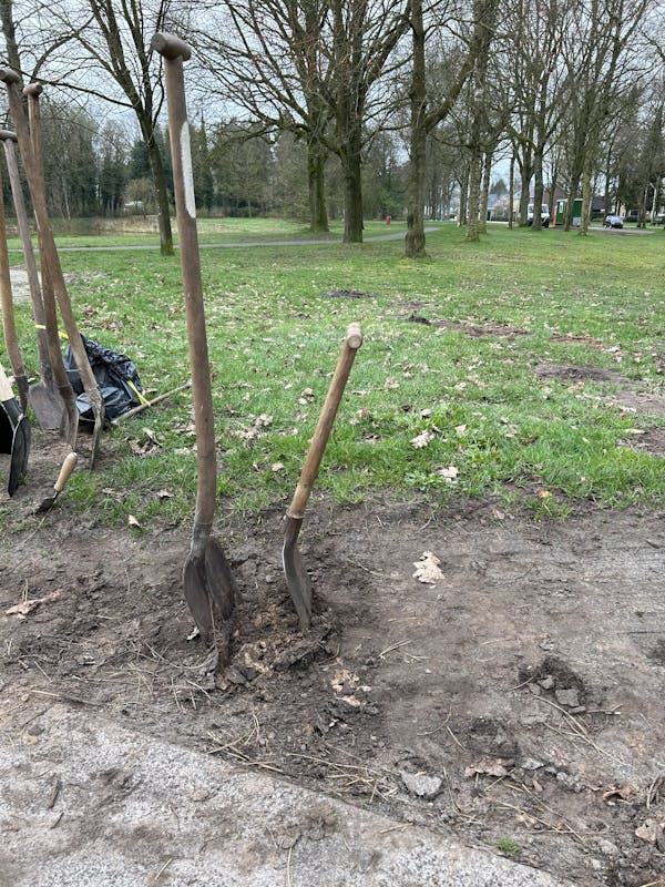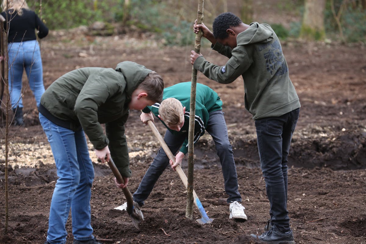 Er waren fanatieke leerlingen bij die soms meer dan dertig boompjes in hun eentje pootten. Het prachtige weer maakte dat de jassen uit konden, en de mouwen werden opgestroopt.