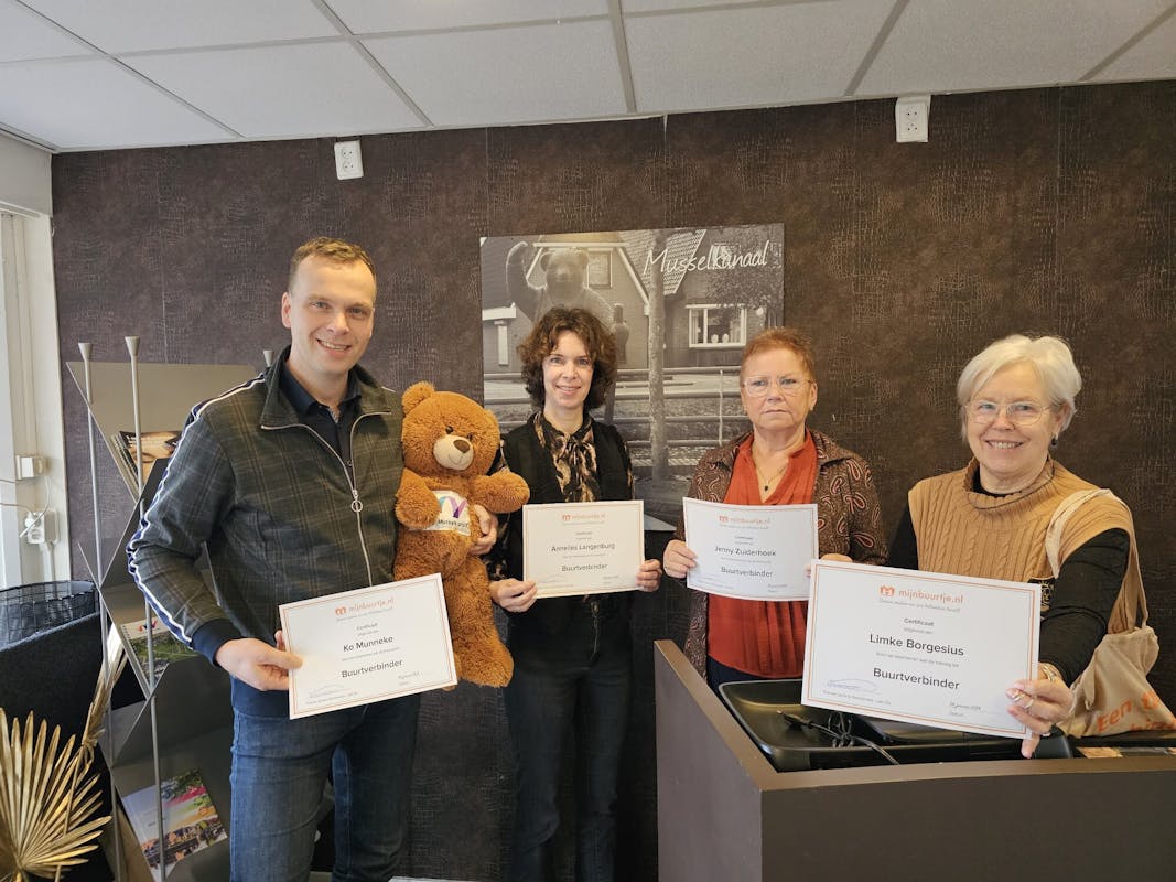 Uit handen van Janine van MijnBuurtje.nl ontvingen zij het certificaat waarmee ze zich nu officieel 'Buurtverbinder' mogen noemen.
