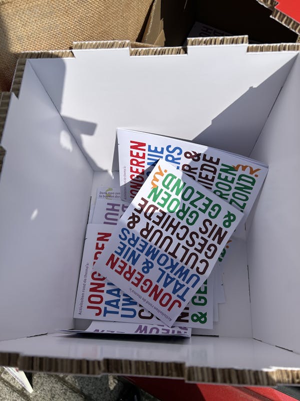 De ideeën bus en formulieren stonde bij de voetbalclub en in het Lint. Daar zijn al wat ideeën opgehaald.