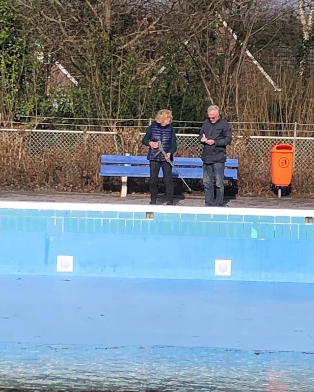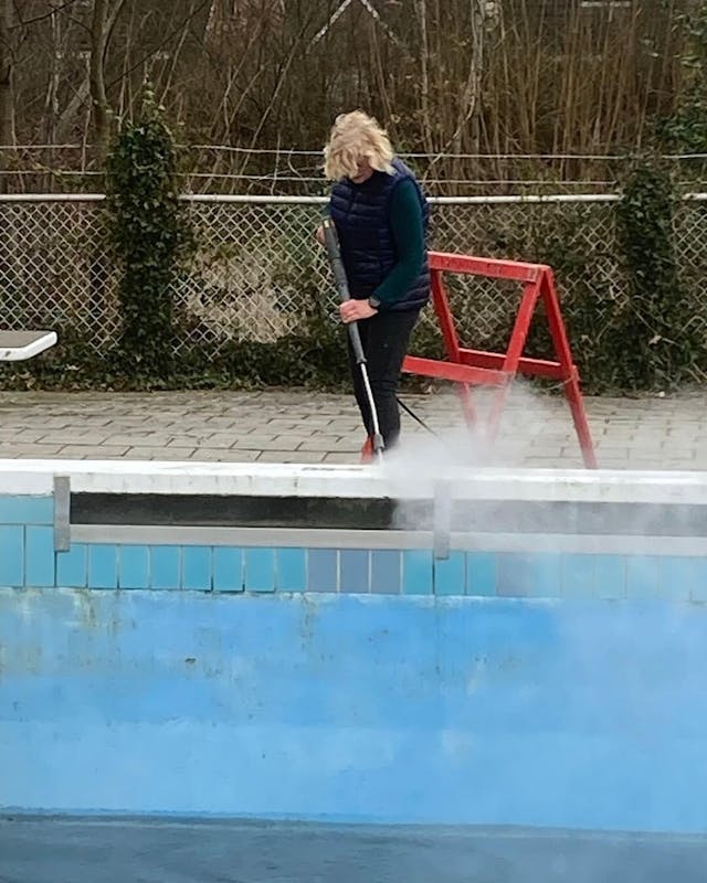 Afgelopen weken werden onder leiding van Bennie en Ria Wiekens de bodem en de wanden van het zwembad schoongemaakt. Het duikgat en een deel van het wedstrijdbad moet namelijk nog wachten op een schoonmaak- en onderhoudsbeurt. Dat komt omdat er nog geen duidelijkheid is over de hoogte van het grondwaterpeil, waardoor de bodem van met name het duikgat kan scheuren als deze wordt leeggepompt. Dit risico willen wij niet lopen in de aanloop naar het nieuwe zwemseizoen.