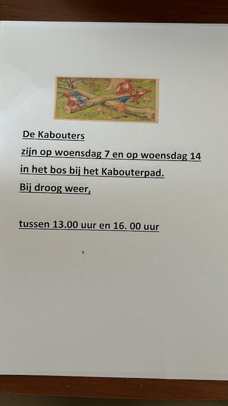 Vanmiddag zijn de kabouters in het bos. Van 13.00 uur tot 16.00 uur.