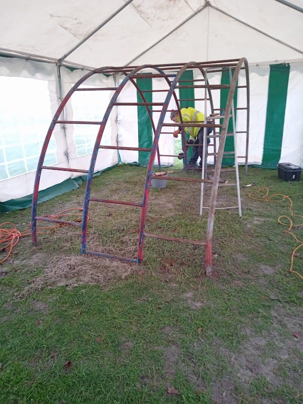 Ondanks het slechte weer van de afgelopen periode hebben de medewerkers van het Dorpsbedrijf -in opdracht van de gemeente Stadskanaal- een groot gedeelte van de speeltoestellen een opknapbeurt gegeven. Ze zijn voorzien van een nieuwe verflaag, en hier en daar was een kleine reparatie nodig. Ze zien er weer fris uit!